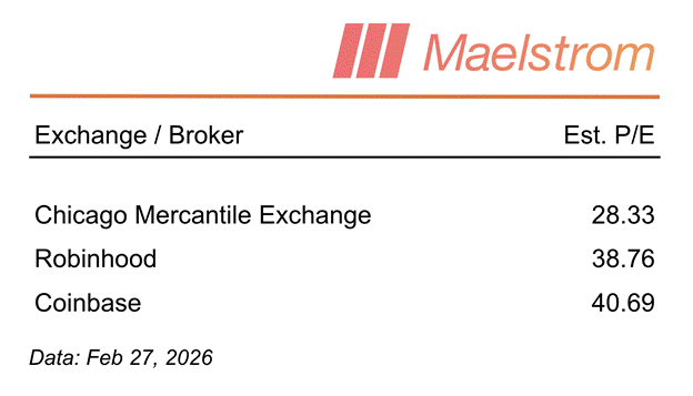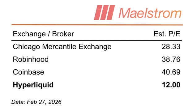 Markets are forward-looking. What will degens pay for future Hyperliquid earnings? Currently $HYPE trades at ~12 P/E. How does this stack up to TradFi exchanges: