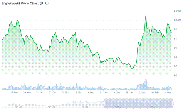 I charted $HYPE/BTC because I want to show that the market woke up to the token’s value. As we all painfully know, unless you were short, Bitcoin fell dramatically since September of last year when $HYPE reached its ATH of almost $60. $HYPE reached a local low of ~$20 a few weeks ago. I believe the catalyst for the resumption of $HYPE’s ascent is the reduction of team token distributions from a headline 9,910,000 for the month of January to a paltry 140,000. In addition, as various points and token incentives sunset at competing perp DEXs, their attractiveness to traders quickly waned. What remains may or may not be real volume, but as I showed earlier, Hyperliquid is the cheapest place to trade based on orderbook liquidity.