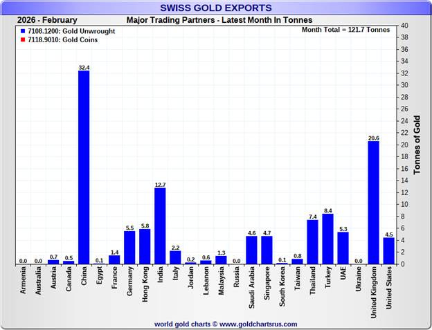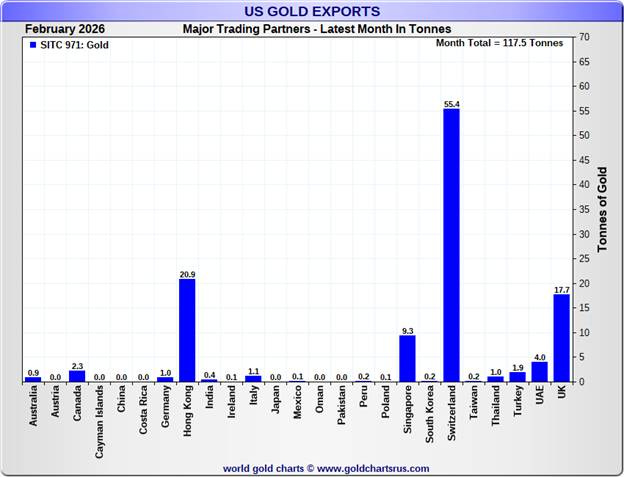 Swiss refineries receive US gold to recast into bars suitable for delivery to China.